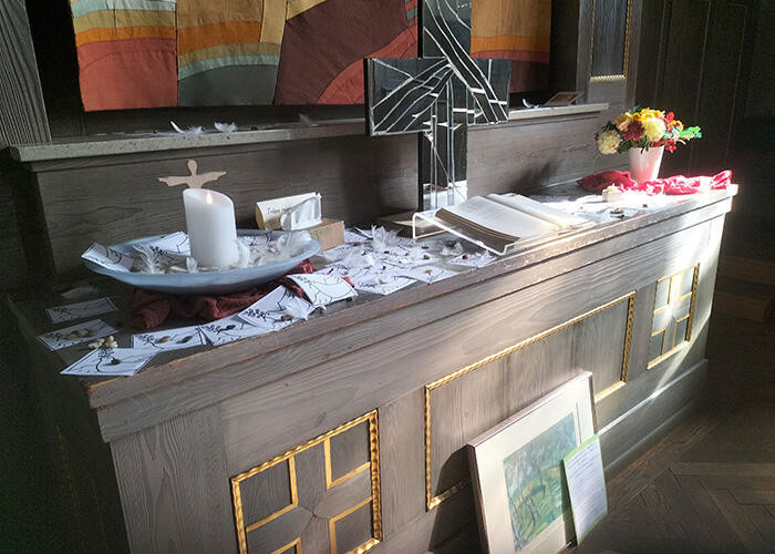 Viele schätzen diesen Ort der Stille i Trubel des Klinikalltags. Wir sehen das an der Fülle der Symbole für SChweres, Freude und Hoffnungen, die auf dem Altar abgelegt werden.