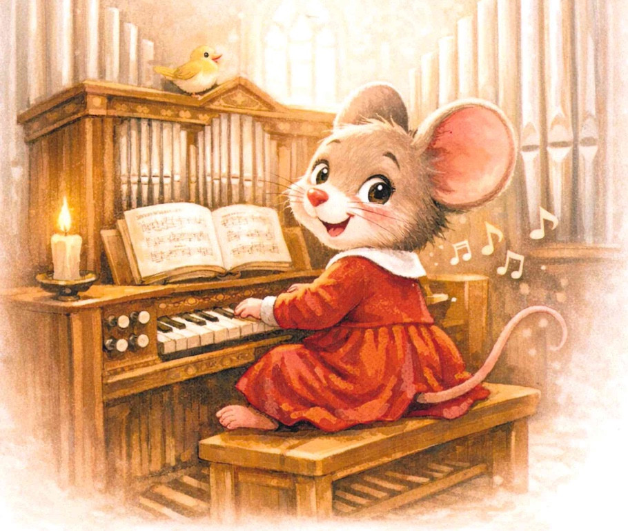 Alle sind herzlich zum Kinderorgelkonzert "Die Orgelmaus" von Karl-Peter Chilla eingeladen. Unser Kantor Christian Seidler gibt den Kantor und Pfarrerin Annette Steck die Orgelmaus.